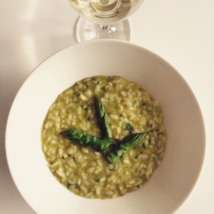 Lisää joukkoon parsapyree kun riisi on kypsää mutta hampaissa tuntuvaa.