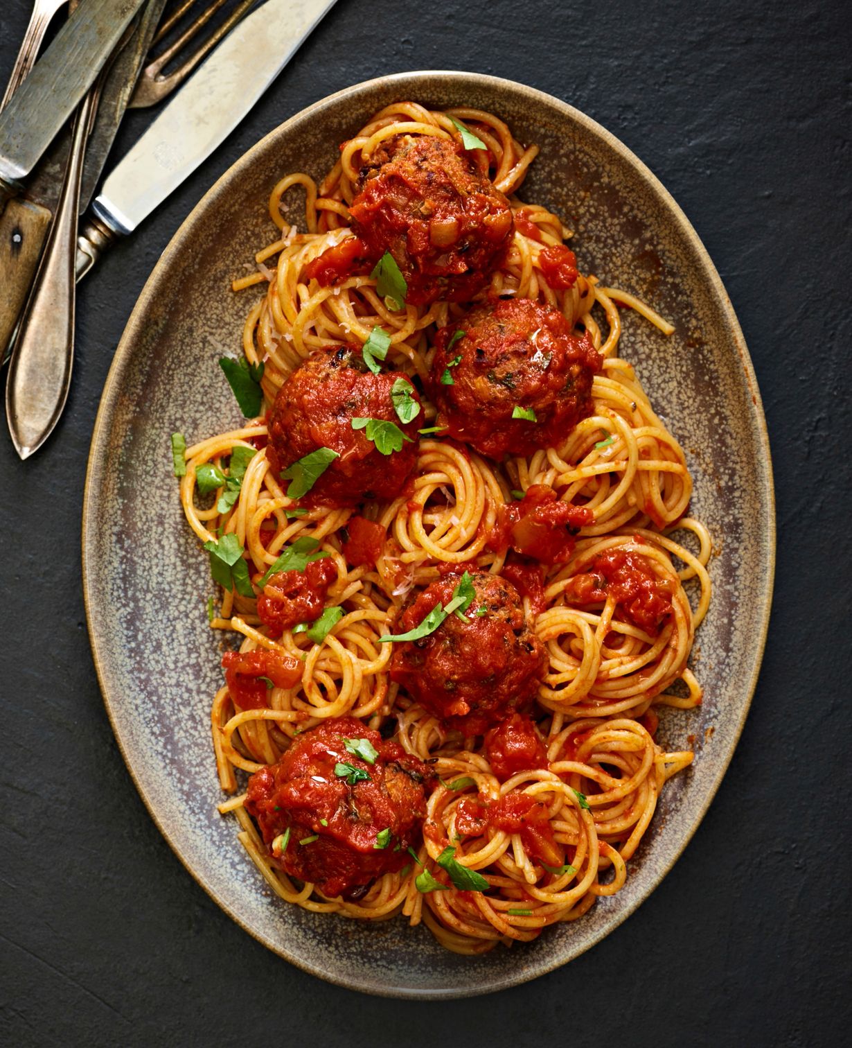 - Keitä spagetti pakkauksen ohjeen mukaan ja valuta. Kuumenna pastakastike paistinpannulla ja lisää spagetti ja kypsät pullat varovasti joukkoon.