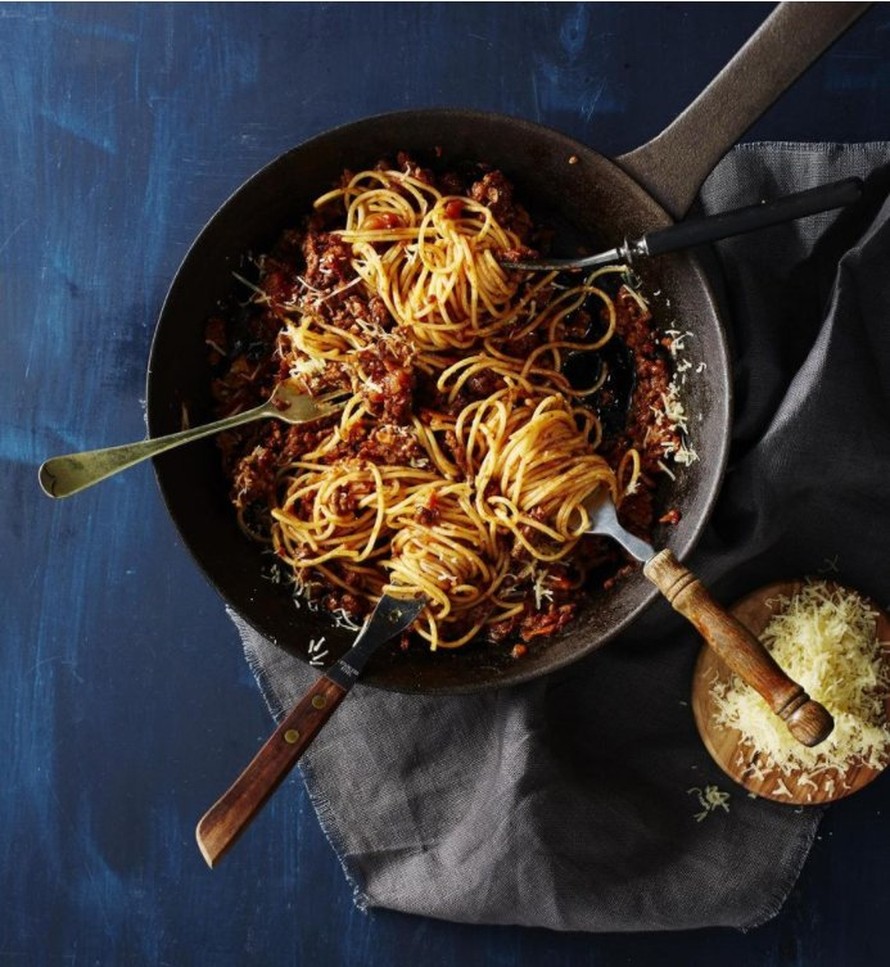 Kuumenna öljy pannulla kuumaksi ja kuullota kasvikset. Siirrä ne pannulla syrjään ja ruskista jauheliha.