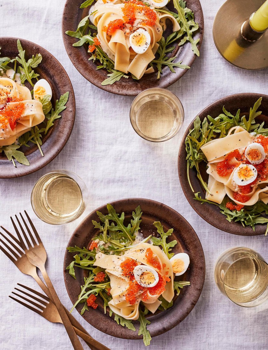 Vinkki! Kokeile mädin tilalla kylmäsavulohta. Viiriäisenmunat voit vaihtaa kananmuniin.
