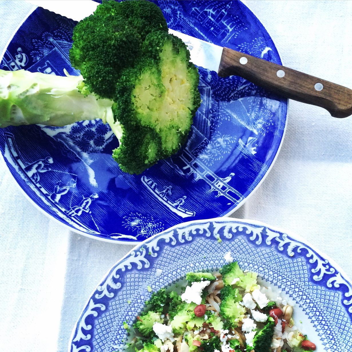 Tämä pastaohje syntyi oikeastaan vähän vahingossa. Tarkoitus oli tehdä ruokatoimittajamme Sanna Kekäläisen mahtavaa karpalo-parsakaalisalaattia. Sen ainekset ovat todella vaatimattomat: parsakaalia, kuivattuja karpaloita, paahdettua mantelia. Mutta maku, se on aivan ylimaallisen hyvä. Eräänä harmaana tiistaina kävi kuitenkin niin, että muistin ostaa parsakaalin. Mutta manteleita ja karpaloita en ostanut, kun muistelin, että niitähän kotona on jo. Ei ollut. Sen sijaan oli täysjyväpastaa, maapähkinöitä ja ricottajuustoa. No, näistähän syntyi aivan mahtava Kekäläisen ohjeen väärennös.