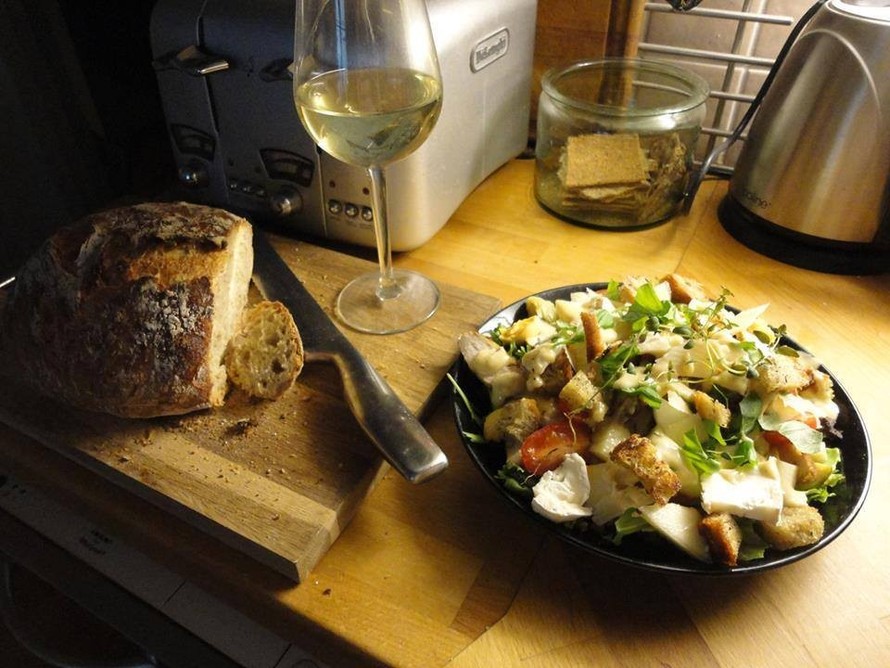 Sekoita kulhossa kuivat aineet ja sekoita nopeasti joukkoon lämmin vesi, älä vaivaa. Peitä kulho tuorekelmulla ja jätä se tekeytymään huoneenlämpöön n. 12-18 tunniksi. Kumoa taikina jauhotetulle pöydälle, taittele nopeasti palloksi (älä vaivaa!) ja jätä leivinliinan alle kohoamaan vielä reiluksi puoleksi tunniksi. Laita kannellinen uunipata (n. 3 litraa) kylmään uuniin ja kuumenna uunia 225 asteessa noin puolisen tuntia. Ota pata pois uunista, nakkaa taikinapallo vuokaan ja paista leipää 30 minuuttia kannella peitettynä. Ota kansi pois padan päältä ja paistaa leipää vielä 15 minuuttia. Tarjoile hieman lämpimänä.