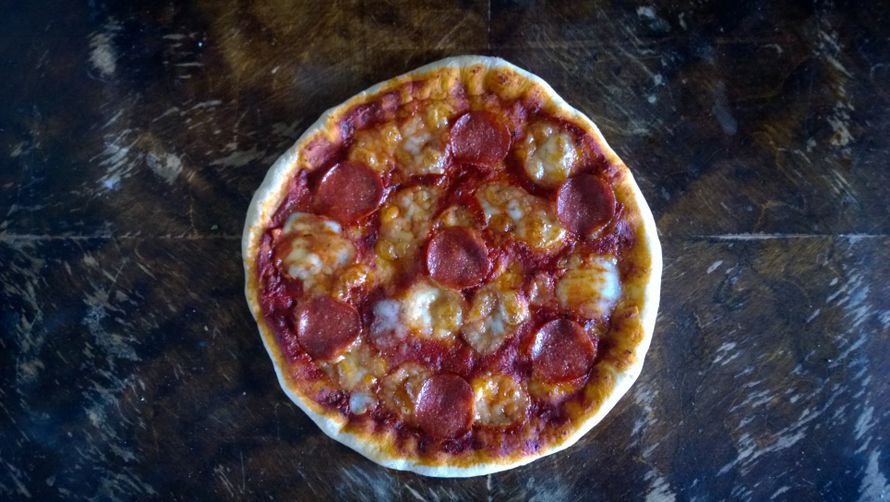 2.220°C 7-11min koosta riippuen. Pizza on valmis kun pizzan päällä oleva juusto on saanut väriä. Voit tarkistaa kypsyyden myös pizzan pohjasta, jos se on saanut hieman väriä niin pizza on valmis.