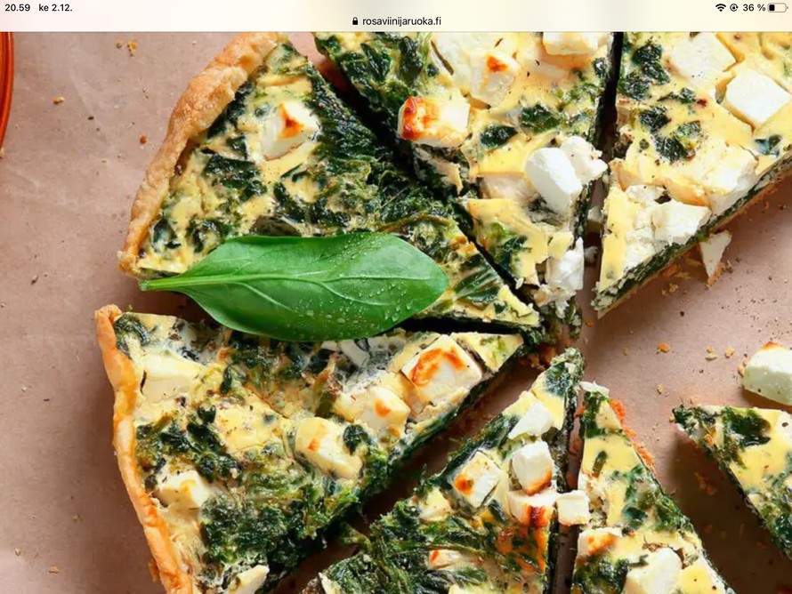3. Hienonna sipulit ja suikaloi purjon valkoinen osa. Paahda sipuleita purjon ja pinaatin kanssa pannulla öljyssä ja nosta pannu pois liedeltä, kun sipuli on pehmennyt. Yhdistä joukkoon loput piirakan ainekset ja sekoita huolellisesti. Säästä kuitenkin osa juustoraasteesta piirakan koristeluun. Kaada piirakan täyte esipaistetulle pohjalle ja kuorruta juustoraasteella.