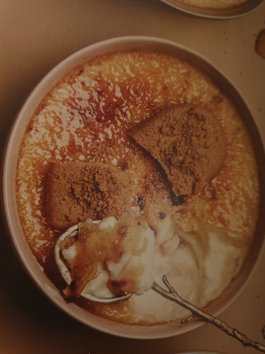 5. Ripottele ruokosokeri vanukkaisen pinnalle ja paahda niihin kaunis pinta kaasupolttimella. Koristele annokset kokonaisilla pipareilla ja viimeistele pinta piparimurskalla.