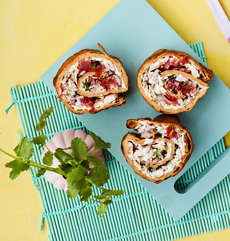 Yhdistimme kanatacot ja pannukakun! Lopputulos on uskomattoman herkullinen ja kevyen tulinen taco-pannarirulla. Taikina terästetään taco-mausteella ja pannari täytetään kanalla, vihanneksilla ja smetanalla.