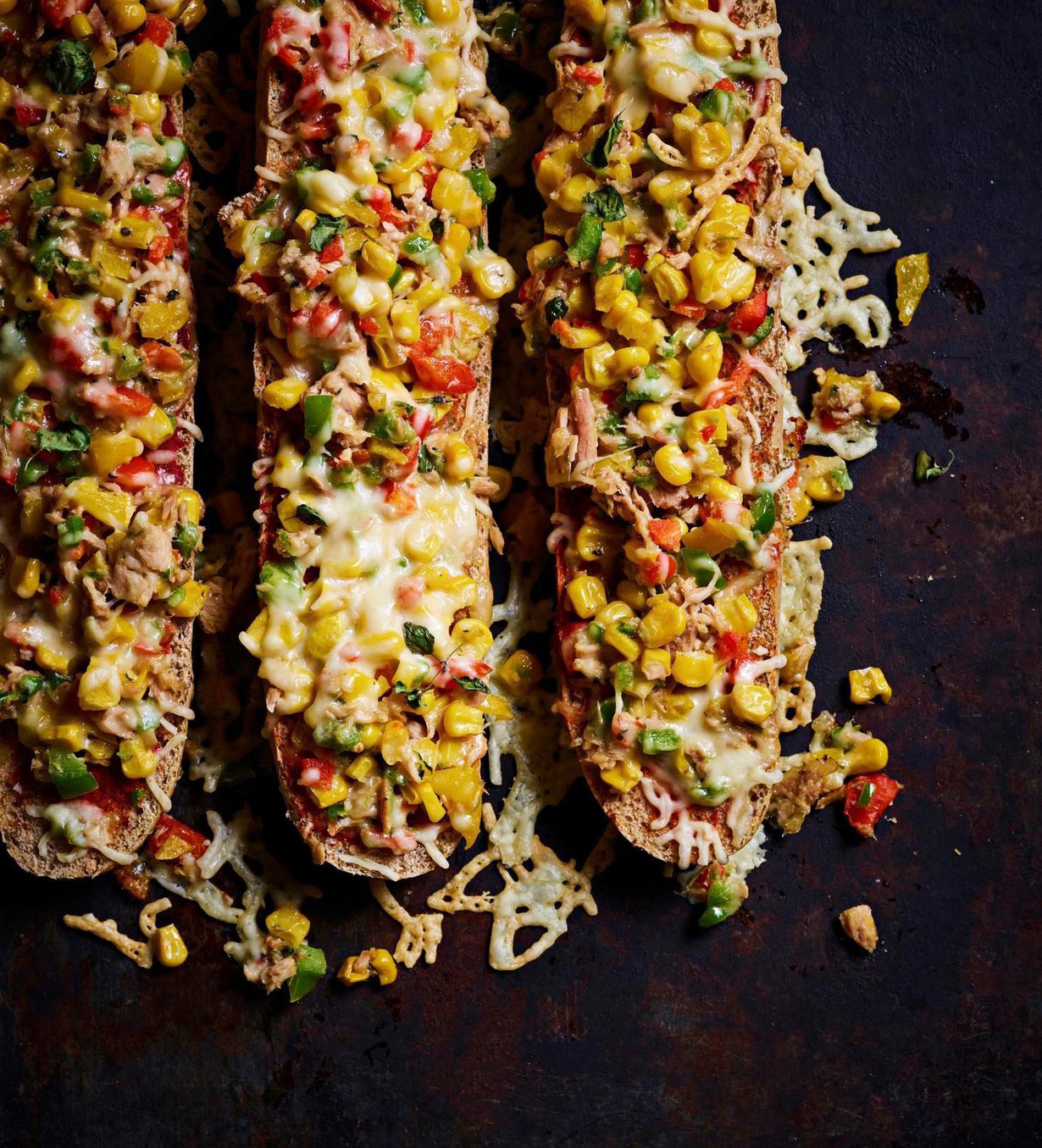 Helpot pizzapatongit valmistuvat esipaistetuista patongeista. Kokeile simppeliä tonnikala-maissitäytettä tai sovella reseptiä omilla lempitäytteilläsi.