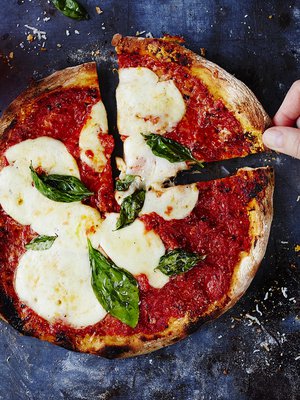 Pizza bianco -tyylisestä pizzasta kypsennetään vain pohja ja kermaviilistä tehty sitruunainen kastike. Kuuma pizza täytetään kylmäsavulohella, kurkkulastuilla, rucolalla ja marinoidulla punasipulilla.