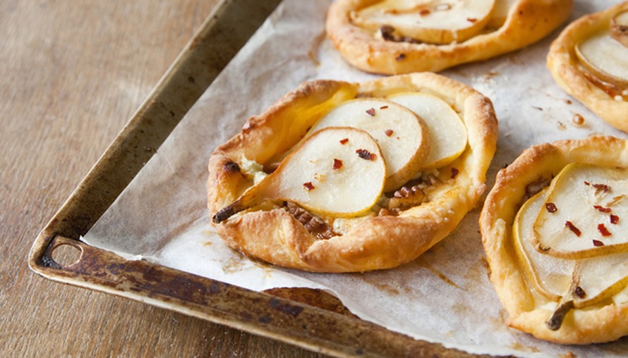 Klassinen makuyhdistelmä uudella tavalla. Ripaus chiliä piristää söpöt stilton-päärynäpiiraat.