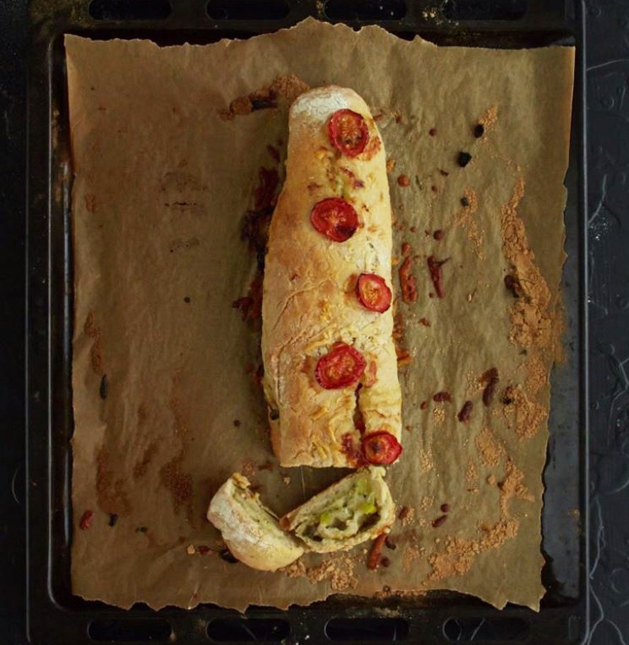 Rullaa pizza pötköksi ja tarjoa täytettynä leipänä. Ihanaa viinilasillisen kanssa!