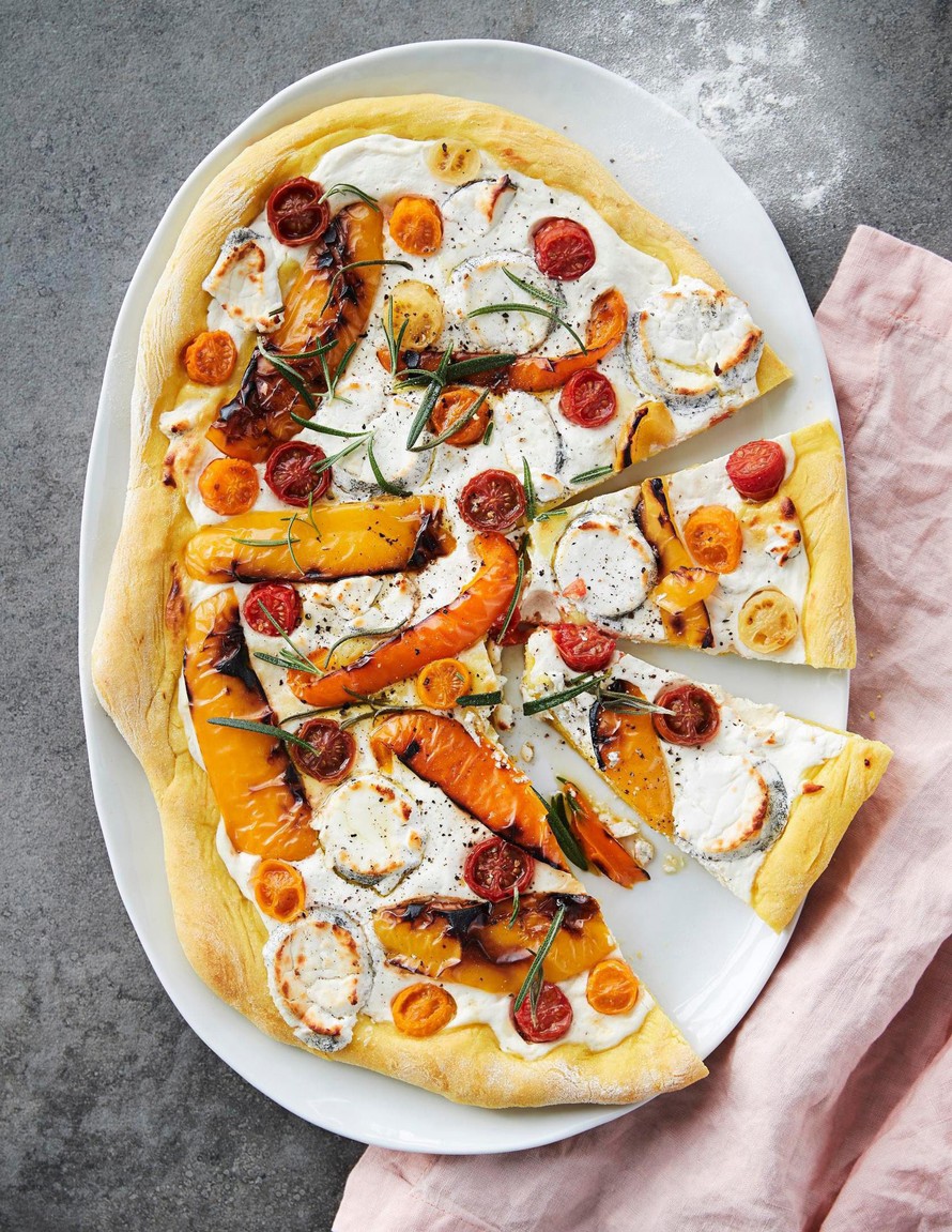 Keltainen paprika-vuohenjuustopitsa