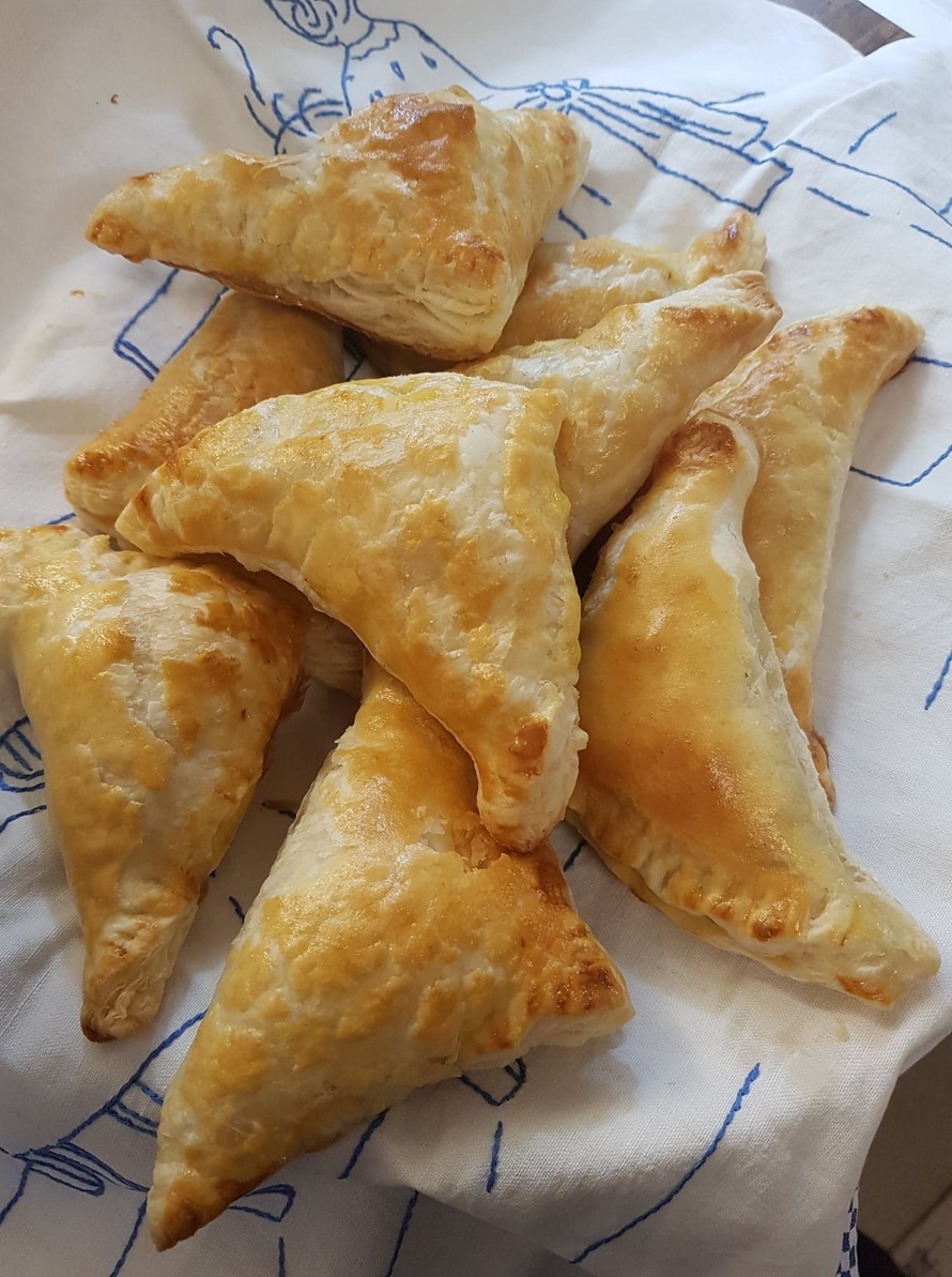 Mikä on parempaa uudenvuoden naposteluruokaa, kuin kinkku-juustopasteijat. Niihin kannattaa hyödyntää joulun ruokajämät jääkaapista ja pakkasesta. Minulla jäi paljon kinkkua,juustoa ja olipa torttutaikinapakettikin myös pakkasessa. Pasteijat kannattaa maustaa voimakkaasti, joten tähän laitoin juuston ja kinkun lisäksi täytteeseen valkosipulia,paprikaa ja kapriksia. Kapristen sijasta voisi käyttää hyvin myös oliiveja ja juustoksi käy voimakkaampikin juusto, kuten homejuusto jne. Näistä tuli erittäin maukaita!