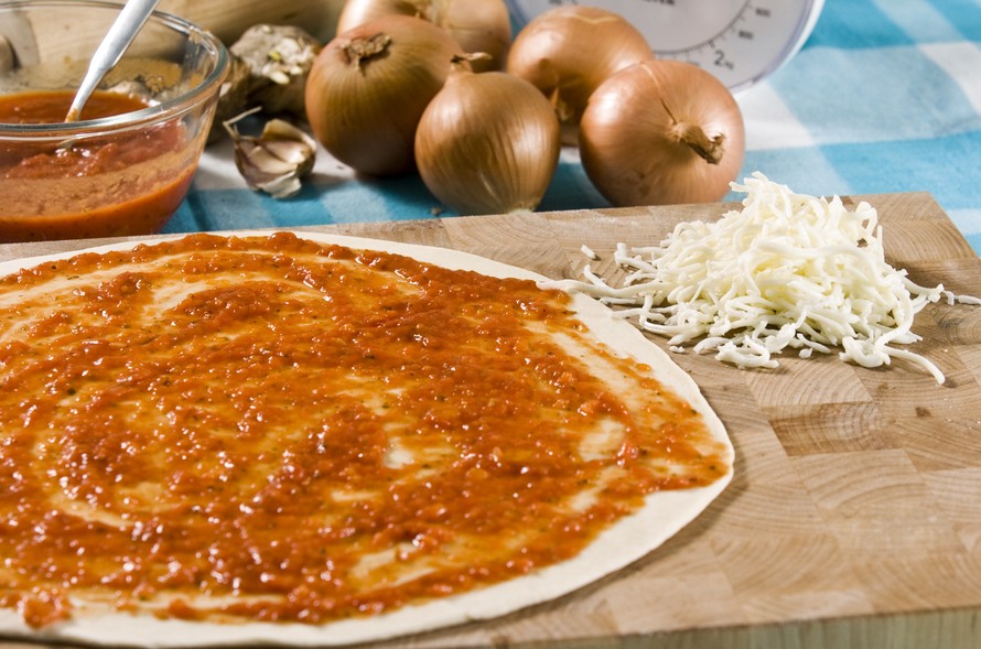 Helppo ja supernopea pizzapohja kohotetaan leivinjauheella. Arkeen sopivan pikapizzan täytteitä voi varioida makusi mukaan.