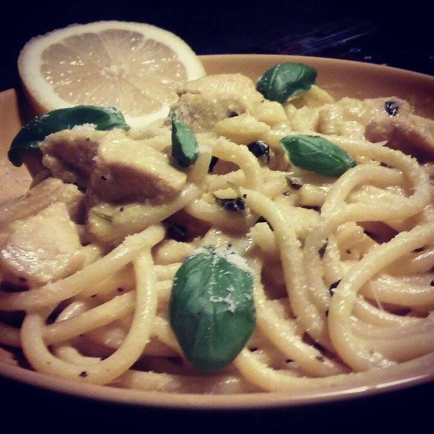 Sekoita joukkoon kerma ja kanafondi. Anna kastikkeen kypsyä hetki. (tässä välissä voit laittaa spagettiveden kiehumaan)