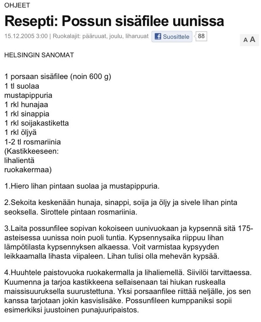 21:36 | 28.9.2014 Possun sisäfile uunissa Lisää omaan keittokirjaan Inkku7634 on lisännyt 10 reseptiä Sisältö jatkuu mainoksen alla Sisältö jatkuu mainoksen alla Possun sisäfile uunissa Lisää kokoelmaan Like 24 Ainesosat Vaiheet Tilaa Glorian ruoka & viini