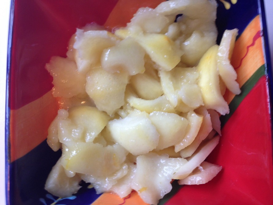 Saimme tätä salaattia viime kesänä Italiassa Napolin lähellä olevalla Procidan saarella pienessä kalastajakylässä. Ihastuimme salaattiin ja muistin sen nyt, kun Vappu lähestyy ja tein simaa! Sitruunat ovat tähän aikaan todella hyviä ja malto on hyvin paksu sekä irtoaa helposti hedelmälihasta!