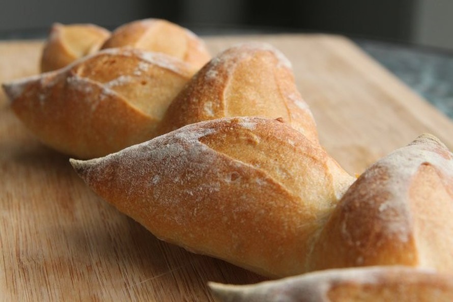 Vaivaa uudestaan ja jaa kolmeen osaan. leivo patongeiksi ja nostata patonpellillä.