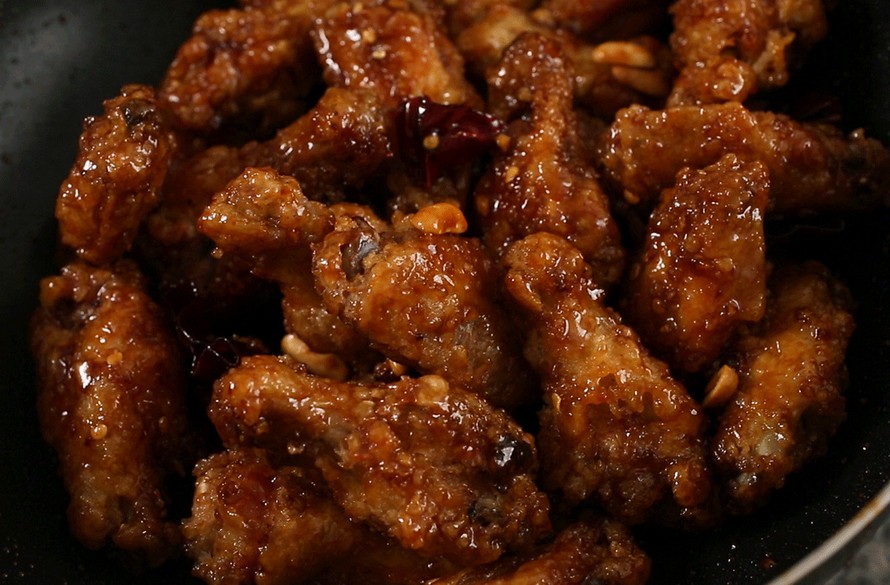 - Kaada siivet kastikkeen joukkoon ja pyörittele varovasti puulusikalla, kunnes jokainen siipi on kunnolla kastikkeen peitossa