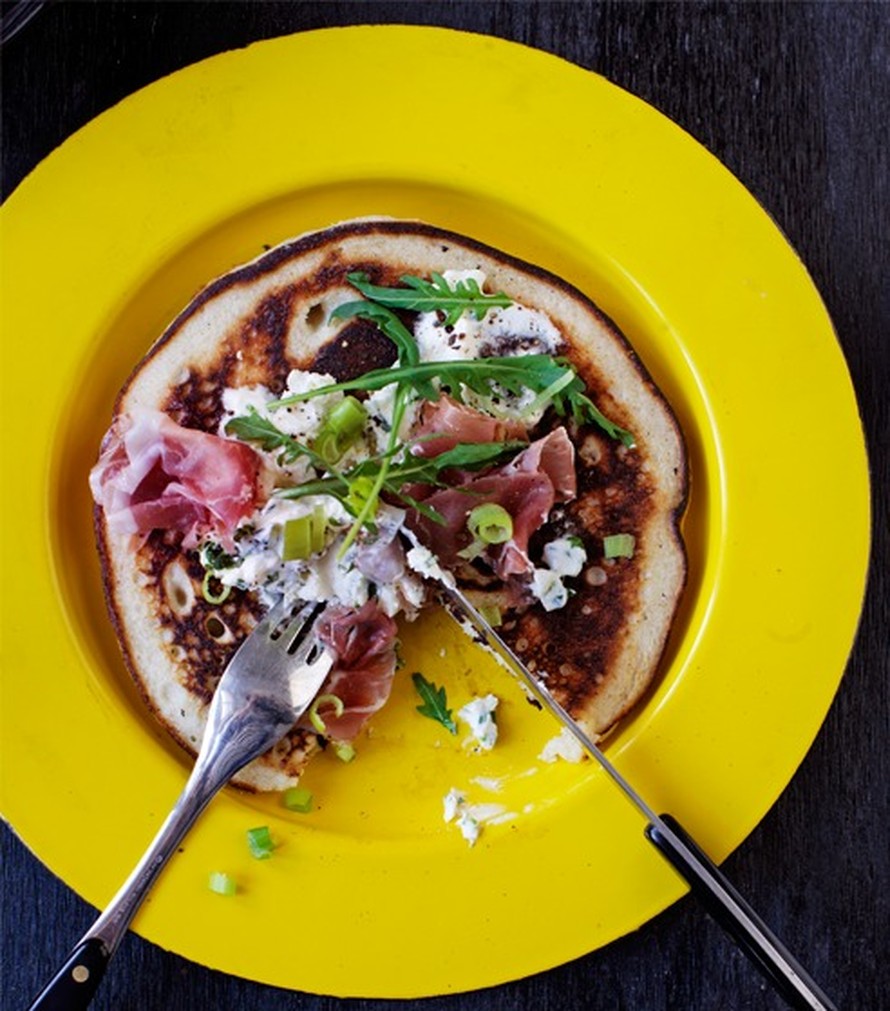 - Yhdistä maito, ricotta, kananmuna ja voisula. Lisää keskenään sekoitetut jauhot ja leivinjauhe. Paista taikinasta esimerkiksi blinipannulla keskilämmöllä molemmin puolin paksuhkoja lettuja eli noin 1–2 minuuttia per puoli.