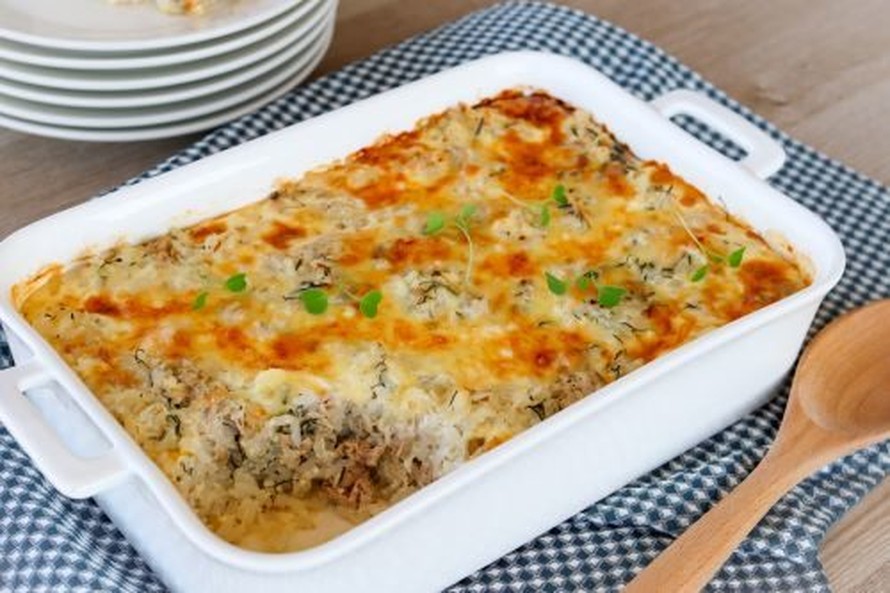 Riisi-tonnikalavuoka on nopea valmistella uuniin.