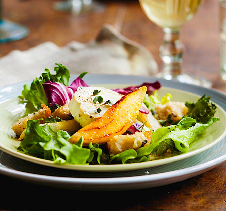 - Kuori päärynät. Halkaise, lohko ja poista siemenet. Kuumenna voi paistinpannussa ja paista päärynälohkot kummaltakin puolelta pannulla. Lisää lohkot salaattiannoksiin.