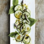 Vegaanisen kaura fraichen ja majoneesin yhdistelmä on riittävän täyteläinen, jotta sienien maut pyöristyvät. Pieni liraus sitruunaa tuo kevyen hapon, mutta ei tee salaatista etikkaista.