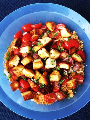 1. Laita mozzarellapallot kulhoon ja sekoita joukkoon pesto. Kuori ja paloittele meloni. Valuta oliiveista neste ja grillatuista paprikoista öljy. Irrota salaatinlehdet toisistaan, pese ja kuivaa ne.