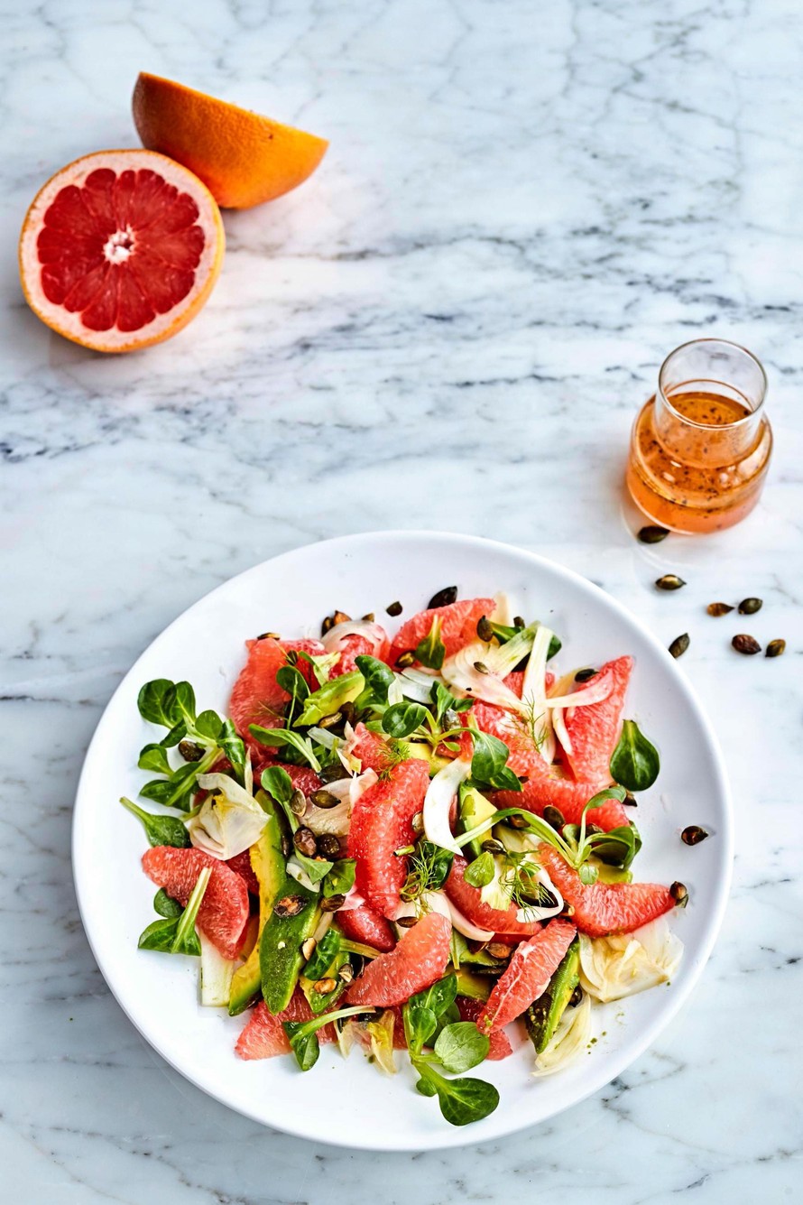 Täydelliset yhdessä! Rasvainen avokado leikkaa mukavasti greipin happamuutta pirteässä salaatissa.