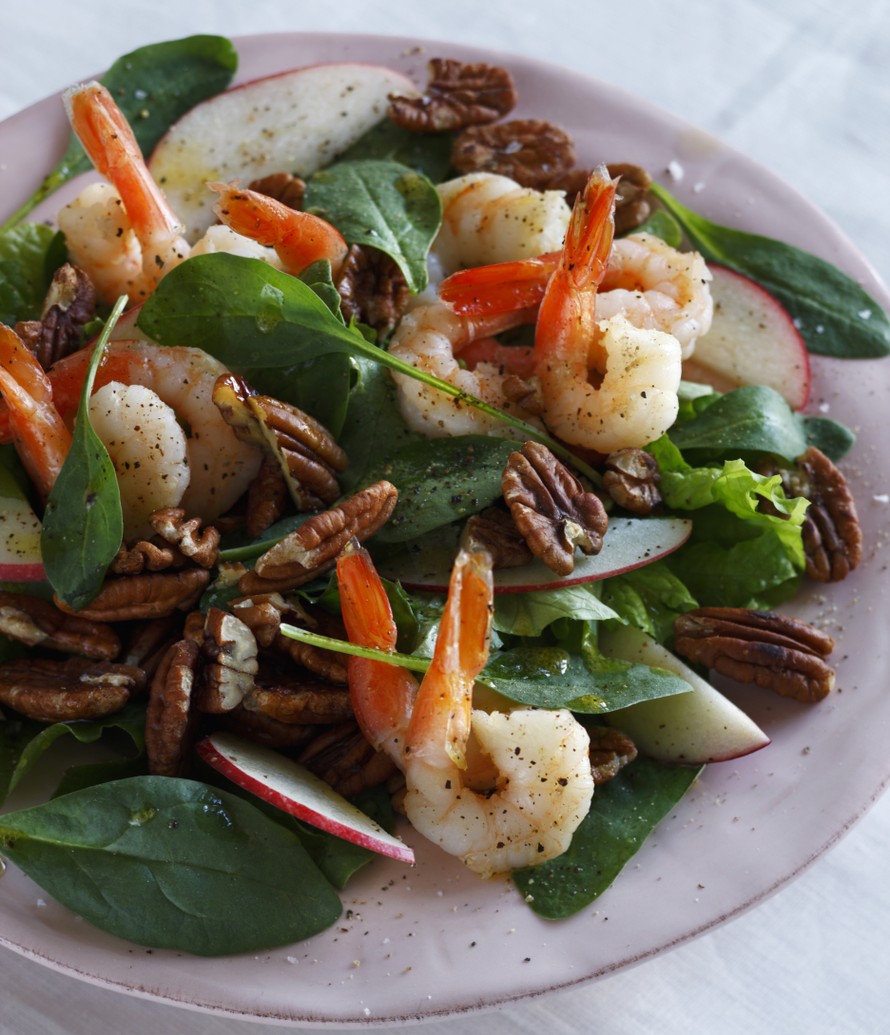 Pekaanipähkinä-pinaatti-rapusalaatti