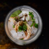 ( Lisää kastikkeeseen kourallinen keitettyjä, kuorittuja katkarapuja täydentämään herkullisen kala-annoksen makua ja ulkonäköä ennen kuin valelet kastiketta kalojen päälle)