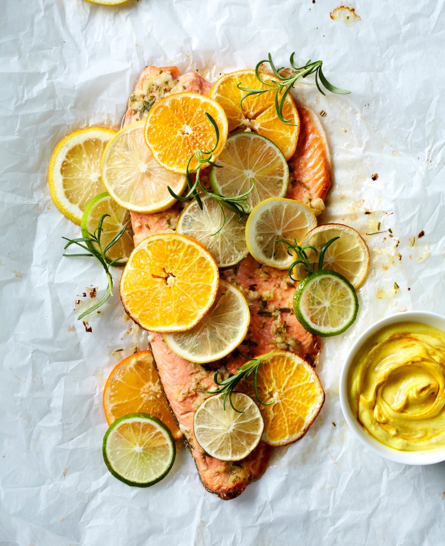 Hunajalla, inkiväärillä ja kurkumalla maustettu sitruslohi on täydellisen lämmittävä ruoka.
