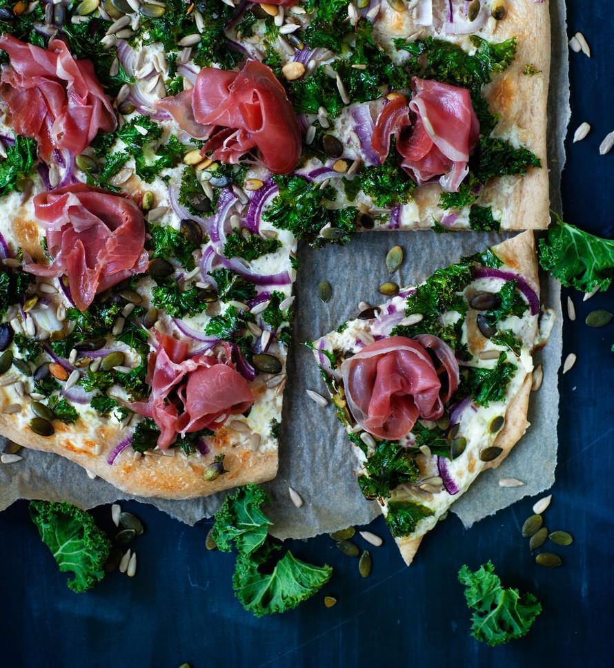 Täydellinen pari lehtikaalilla päällystetylle pizzalle on parmankinkku. Voit lisätä kinkkuviipaleet ruusukkeina tai kauniina kaistaleina pizzan päälle juuri ennen tarjoilua.