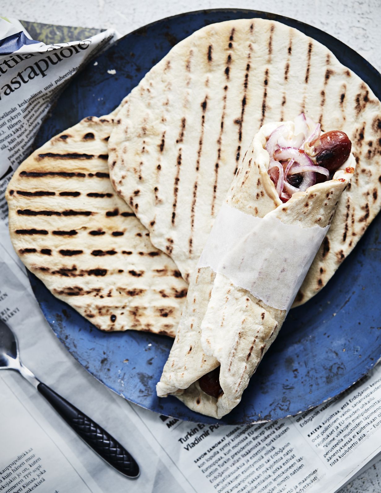 Grillissä valmistuu usein satsi erilaisia kasviksia, makkaroita ja lihoja. Kun ne kääräisee itse valmistetun kuuman ja pehmeän rieskan sisään, on grilliateria heti selkeämpi herkullinen kokonaisuus.