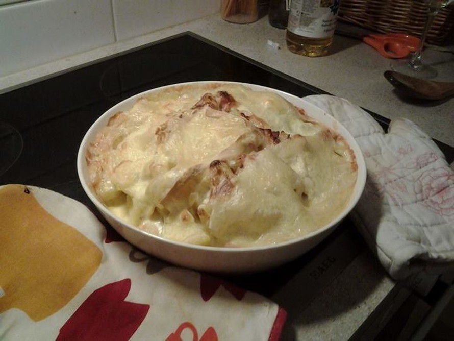Laita vuoka 200-asteiseen vuokaan noin 25 minuutiksi, kunnes juusto on sulanut.