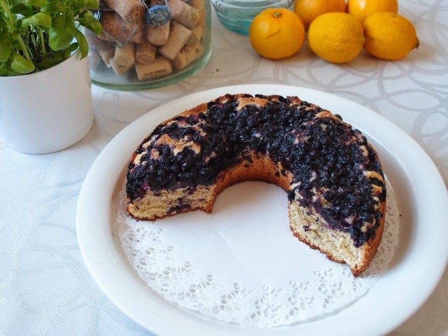 Tein vähän niin kuin sokerikakkutaikinan, mutta lisäsin hieman kaurahiutaleita, kardemummaa ja voisulaa taikinaan. Laitoin taikinan rengasvuokaan, jäiset mustikat ja vähän sokeria taikinan päälle ja sitten uuniin.