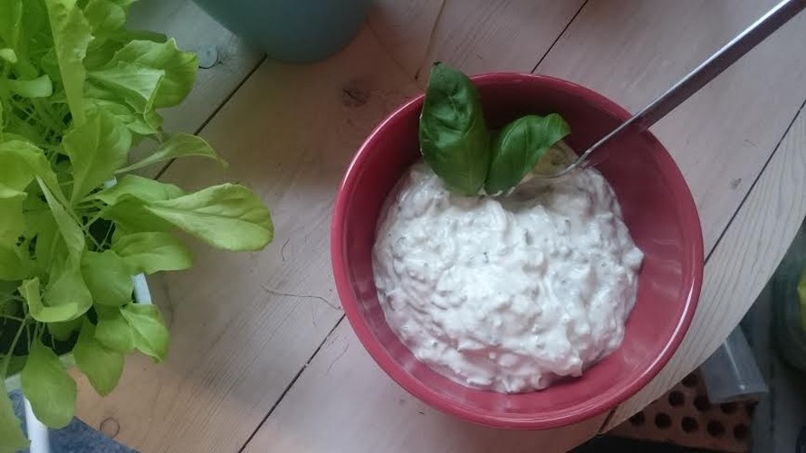 Valkosipuli voi lisätä maun mukaan. Anna maustua jääkaapissa.