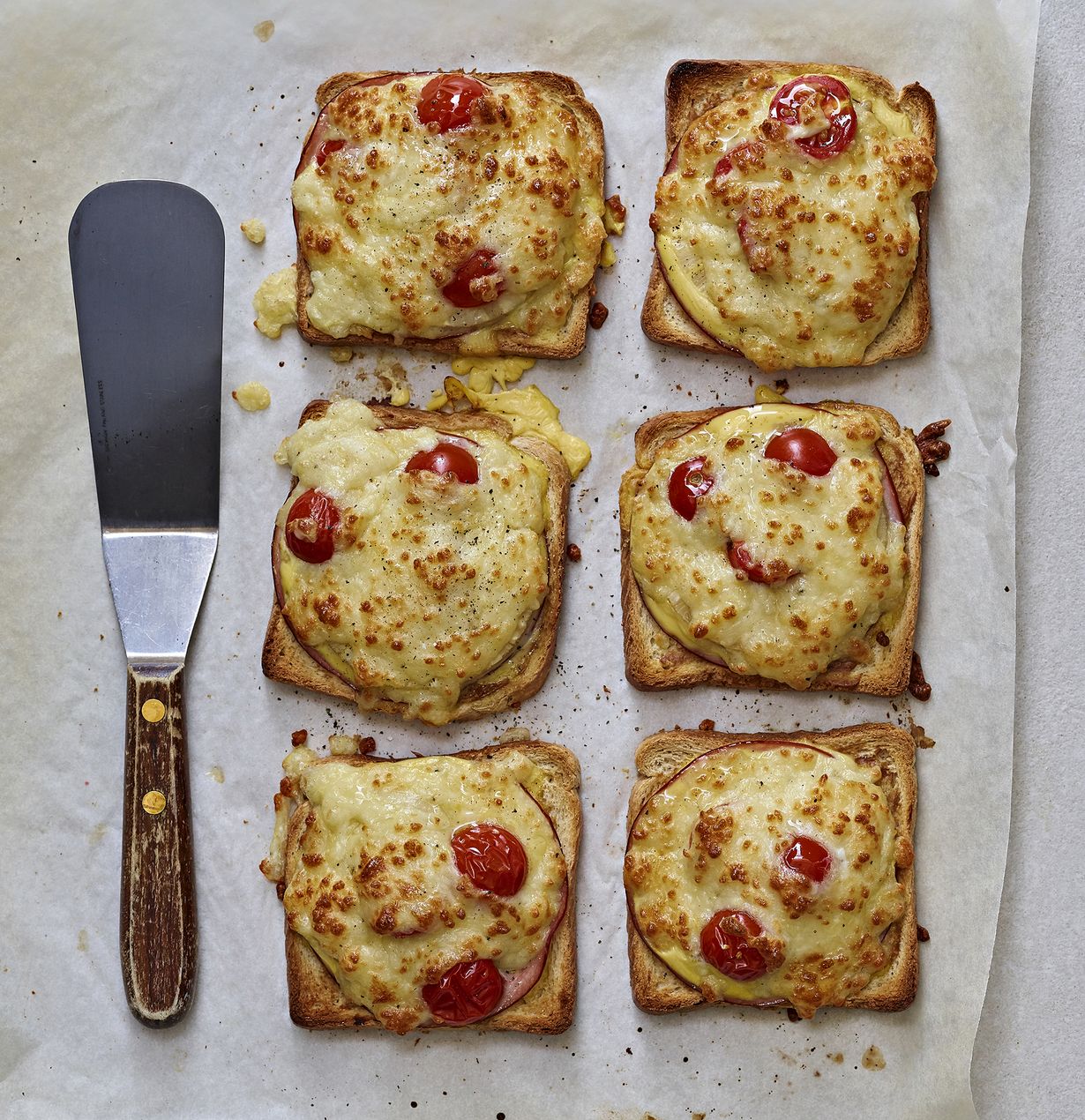 Pohjaksi sopivat niin ruisleipäviipaleet, paahtoleipä kuin kuivahtanut maalaisleipäkin. Eriparisista leivistä saa aikaiseksi hauskannäköisen pellillisen.