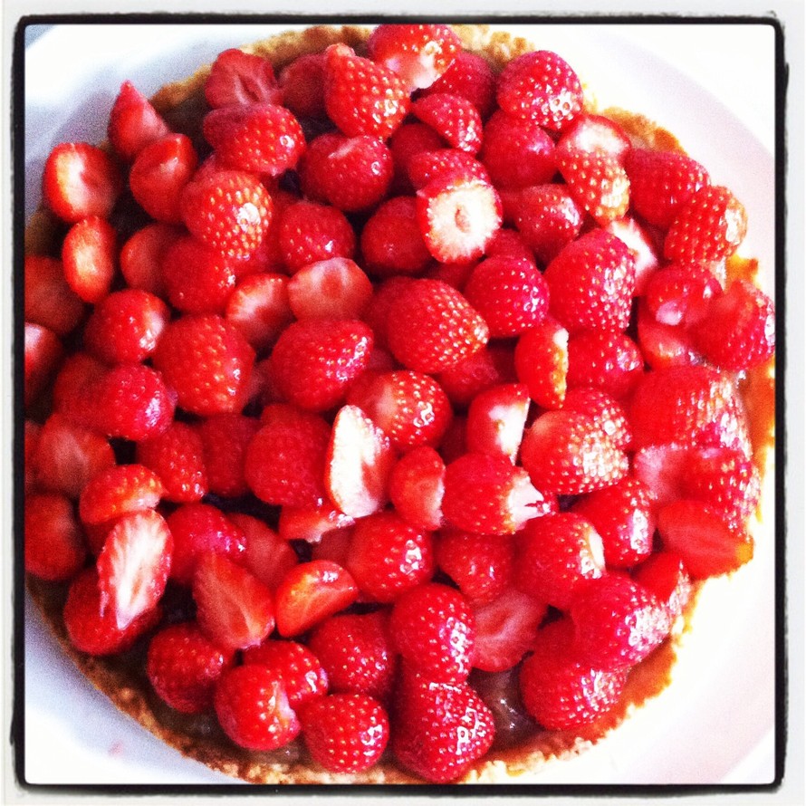 Levitä sitten hilloke ja sen päälle viipaloidut mansikat.