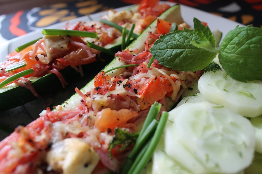 Koverra kurpitsojen sisus pois. Laita kinkkusuikaleet, feta ja pilkottu tomaatti kulhoon. Lisää valkosipuli, suolaa ja pippuria maun mukaan. Kuorruta veneet täytteellä ja ripauksella juustoraasteetta.