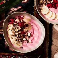 Vadelmasmoothie ja tahinigranola
