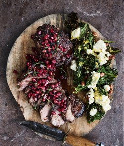 Granaattiomenakaritsa ja lehtikaali-fetapaistos