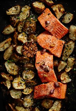 Pistaasikuorrutettu kala ja vihreä perunamurske