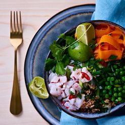 Hiillostettu kuha, etikoitu tuorejuusto ja pikkelöidyt kasvikset Glorian ruoka ja viini lisäsi reseptin