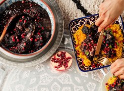 Broileri-saksanpähkinäpata ja rapeapohjainen sahramiriisi