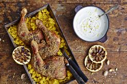 Dukkah-paahdettuja broilerinkoipia ja sitruunajogurttia