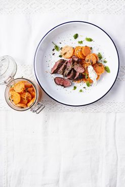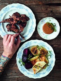Paistetut karitsankyljykset, paahdetut juurekset ja mämmidippi Glorian ruoka ja viini lisäsi reseptin