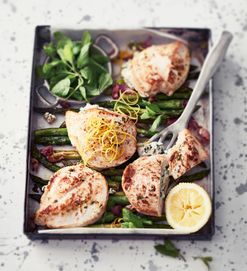Ricottalla täytetyt broilerinfileet ja paahdetut parsat