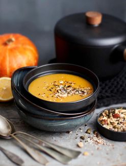 Spelttiuunipuuro ja appelsiini-vaniljakeitto
