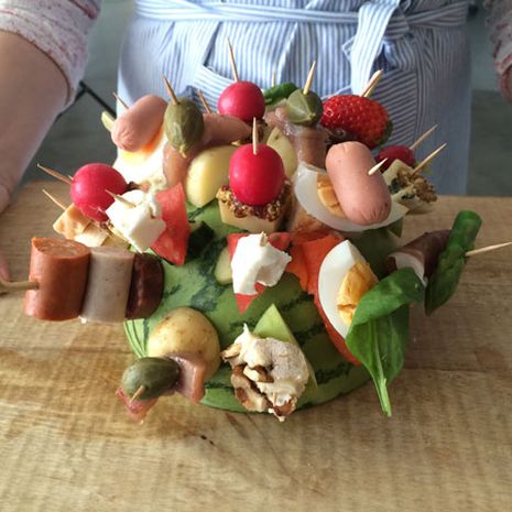 Uusilla makuyhdistelmillä tikutettu nakkisiili on vappubuffetin hulvaton keskipiste
