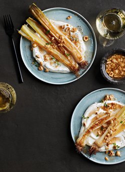 Grillatut kasslerpihvit ja lipstikka-perunasalaatti